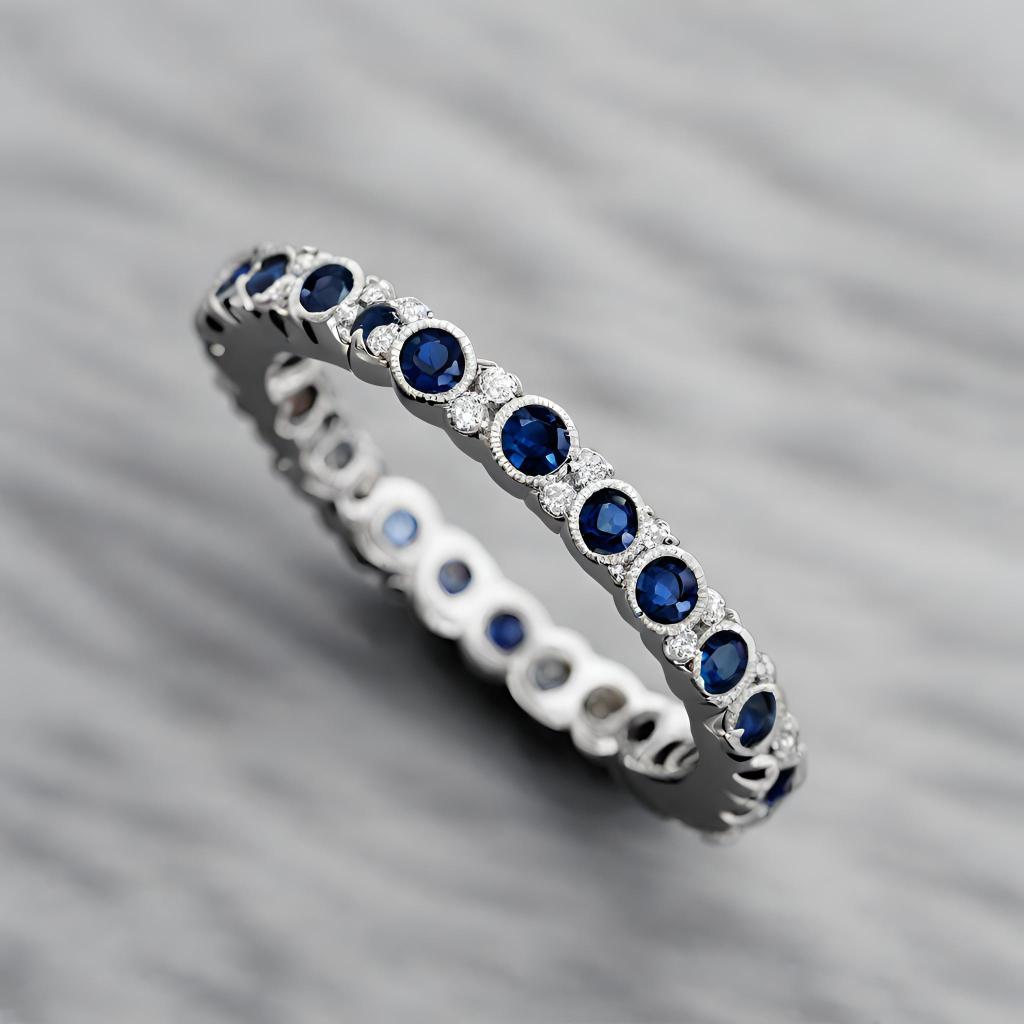 Whether it’s for a special occasion or to add a touch of luxury to everyday life, the Luna Sapphire and Diamond Eternity Ring in 14k White Gold is a choice that combines beauty, durability, and symbolism in one elegant package.